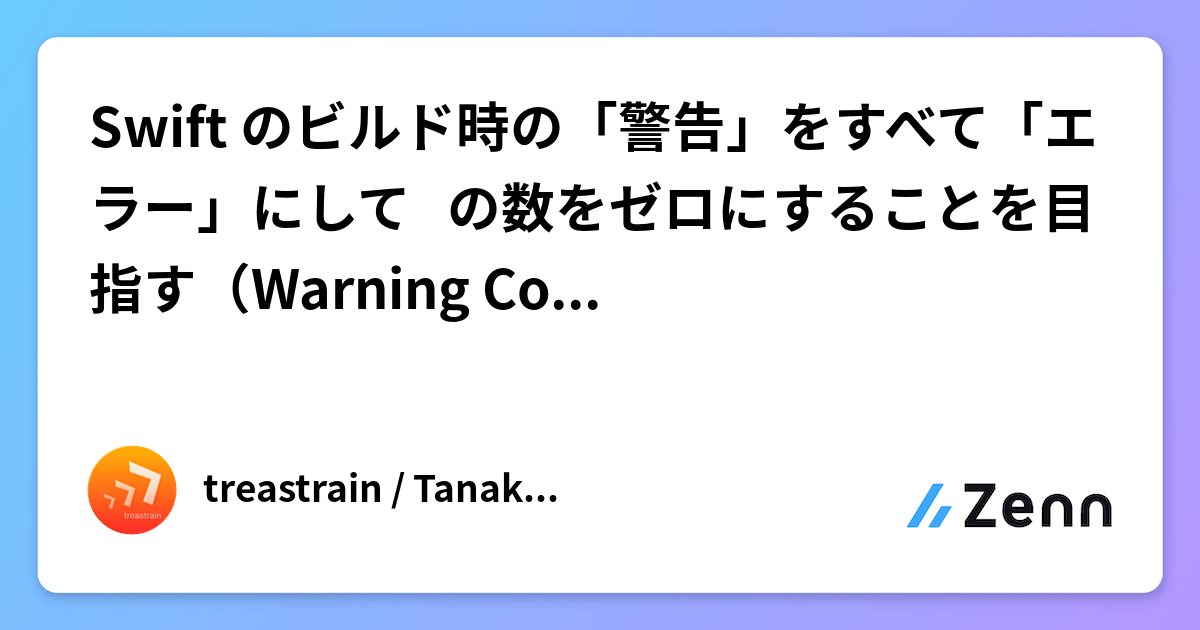Swift のビルド時の「警告」をすべて「エラー」にして ⚠️ の数をゼロにすることを目指す(Warning Control)